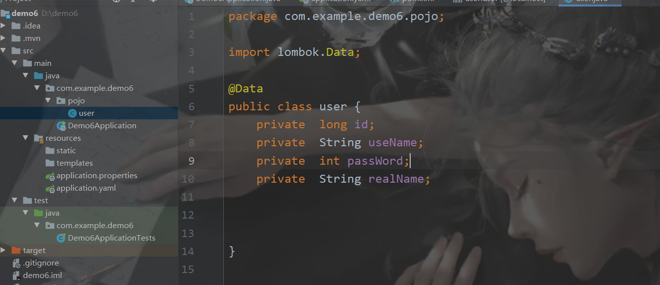 @Data public class user { private long id; private String userName; private int passWord; private String realName; @TableField(fill = FieldFill.INSERT_UPDATE) private Date createTime; @TableField(fill = FieldFill.INSERT) private Date updateTime; }