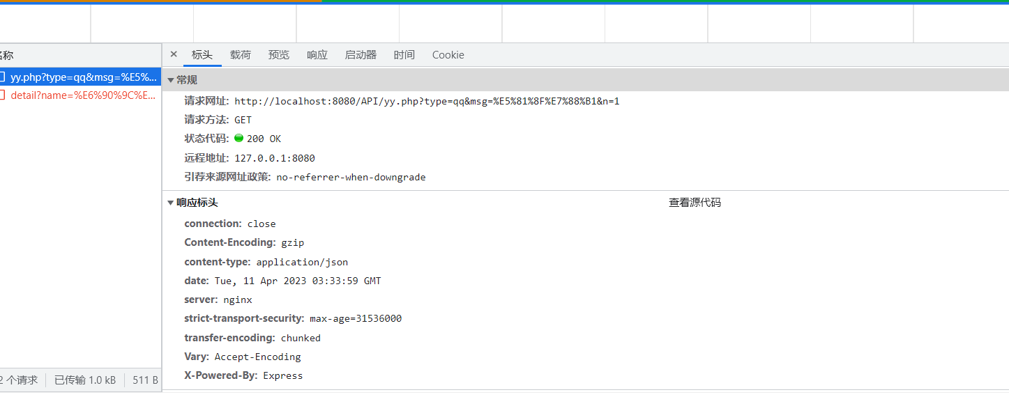虽然开头是localhost,但是已经代理成功,请求回数据