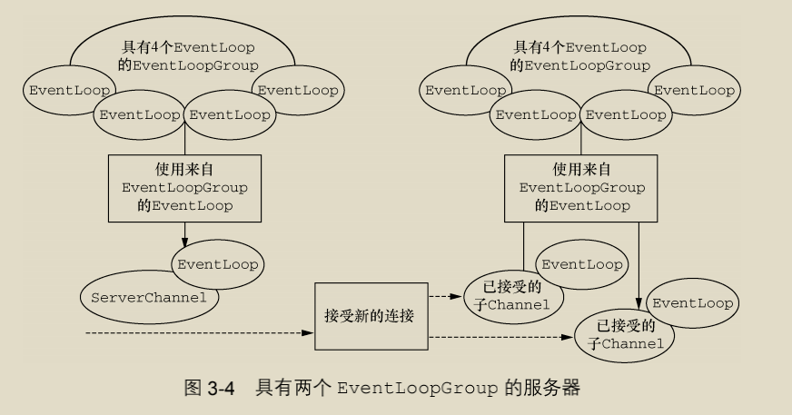 与 ServerChannel 相关联的 EventLoopGroup 将分配一个负责为传入连接请求创建