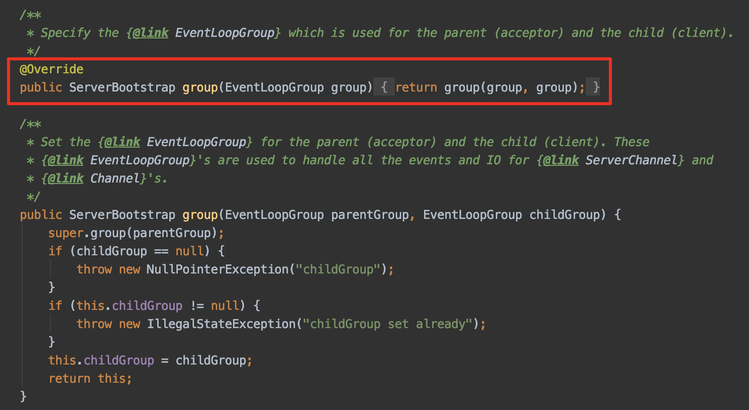 bootstrap.group(bossGroup, workerGroup)