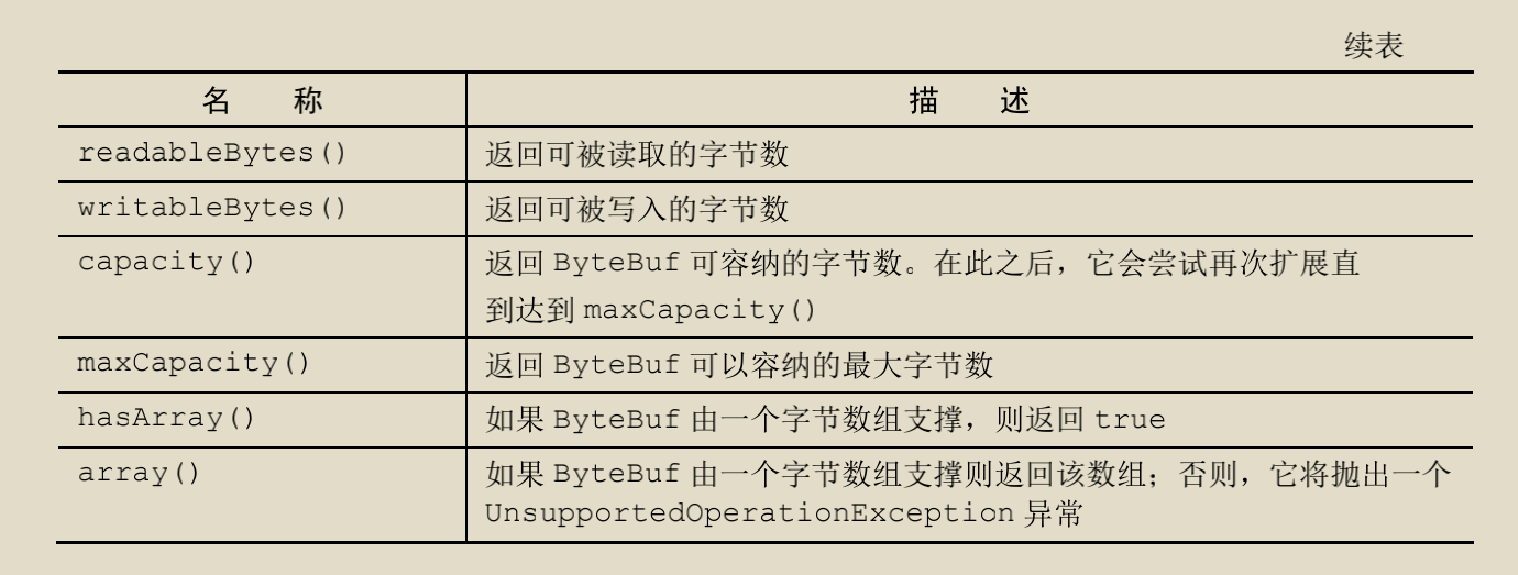 //当 hasArray()方法返回 false 时,尝试访问支撑数组将触发一个 Unsupported OperationException。这个模式类似于 JDK 的 ByteBuffer 的用法。