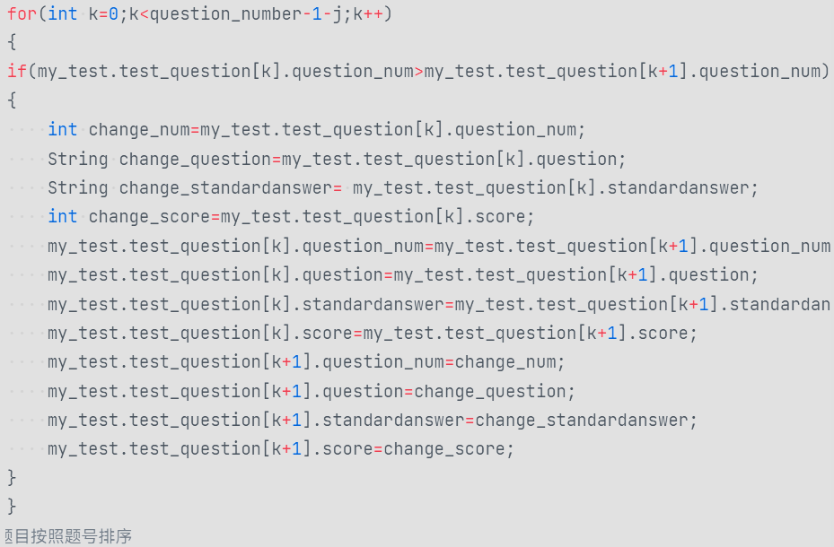 解决方法:利用题号对题目类数组进行排序(从小到大),利用答题号对答题类进行同样的操作。