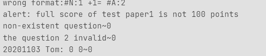 [3]首先判卷是否有输入删除题号,若没有,直接进行[2]操作,反之,匹配题号与删除题号,若一致则输出"the question 2 invalid~0",并将该题的题分改为0。
