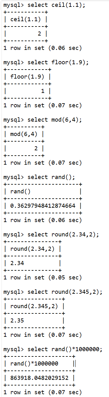 | ROUND(x,y) | 求参数x的四舍五入的值,保留y位小数 |