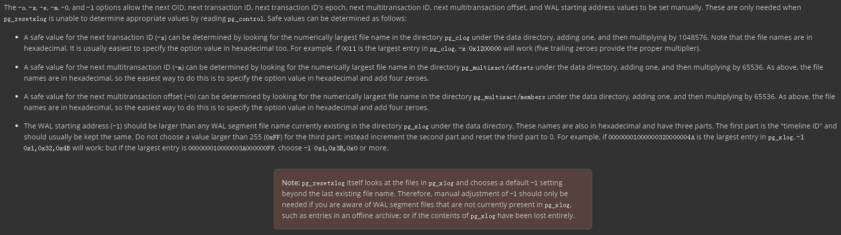 3、如果是由于误删了pg_logs的文件导致集群无法启动,也可以使用pg_resetxlog命令使集群恢复启动,但一定要谨慎验证数据的完整性