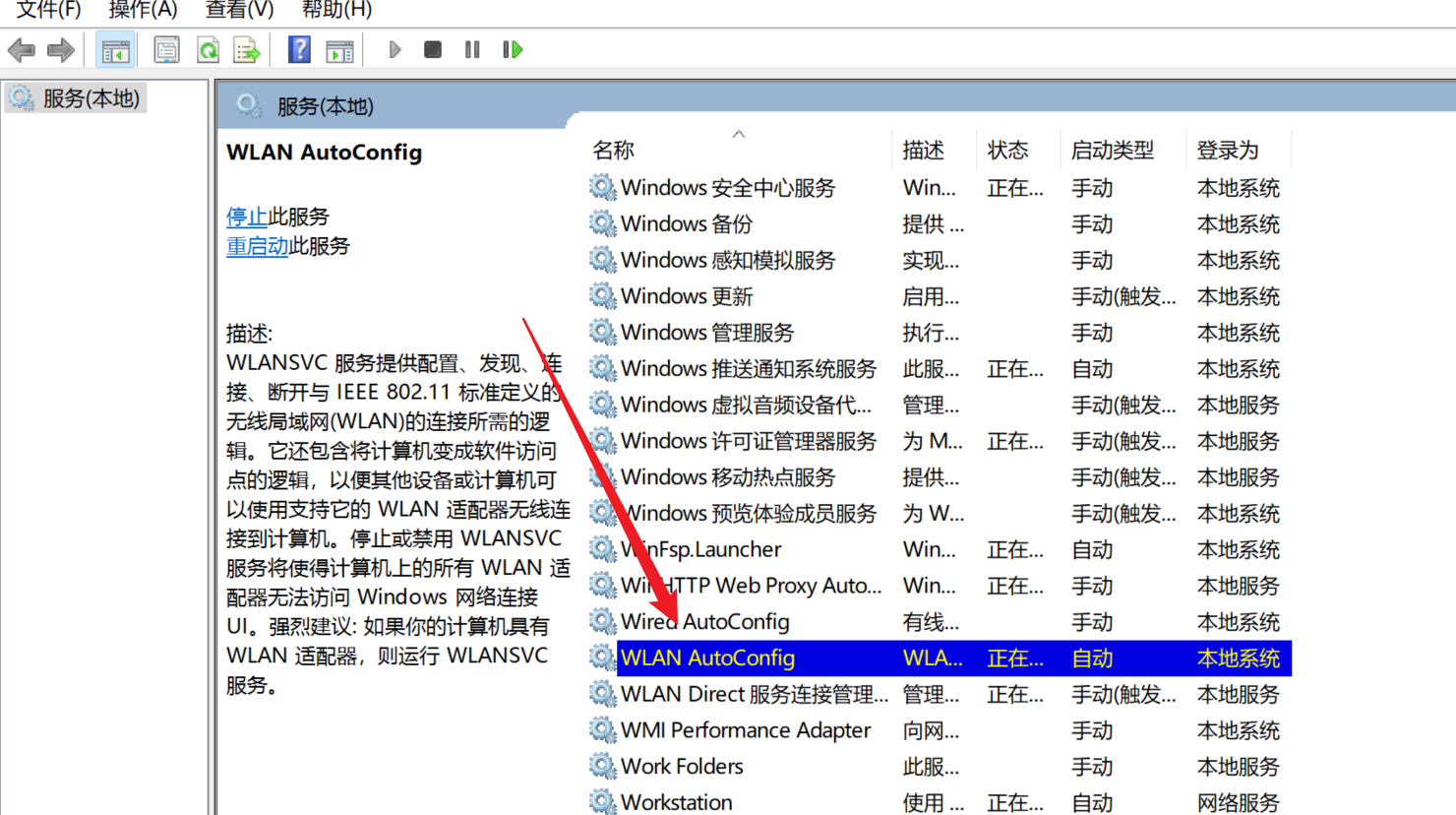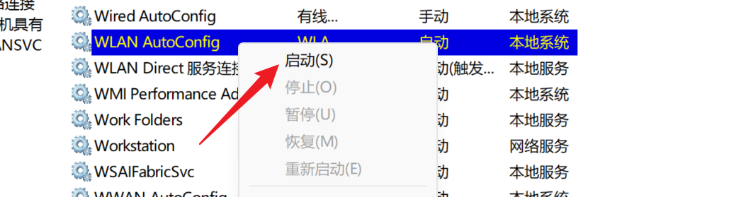 - 服务中启动WlanSvc服务,名称是WLAN AutoConfig,启动后能够正常连接无线,通过无线网络进行上网