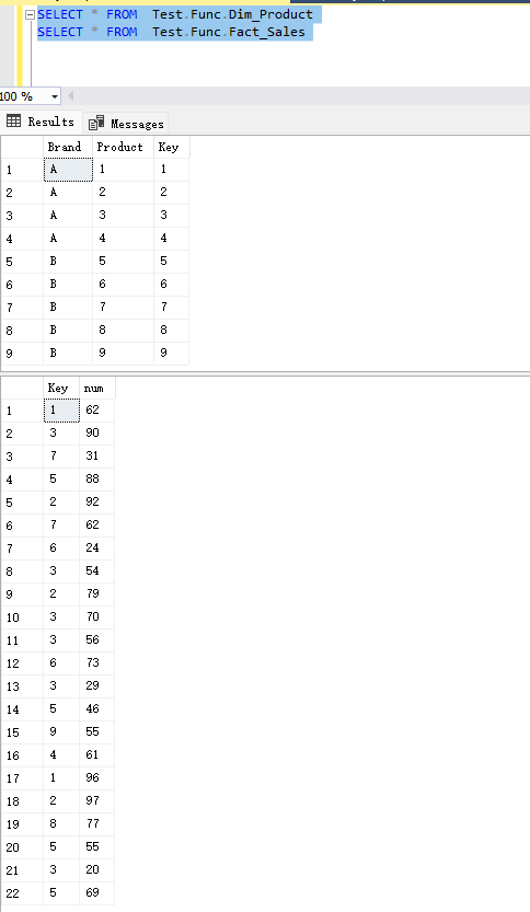 SELECT Brand,Product,[num] ,SUM([num]) OVER (ORDER BY num ) as sum_window ,SUM([num]) OVER () as sum_total ,SUM([num]) OVER (PARTITION BY Brand ORDER BY num ) as sum_window_partition ,SUM([num]) OVER (PARTITION BY Brand ) as sum_total_partition FROM ( SELECT B.Brand,B.Product,SUM([num]) AS num FROM Test.Func.Fact_Sales AS A LEFT JOIN Test.Func.Dim_Product AS B ON A.[Key] = B.[Key] GROUP BY B.Brand,B.Product ) t1 order by Brand,num
