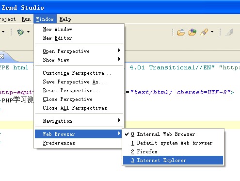 调整Zend Studio - 7.1.0 浏览网页的方式