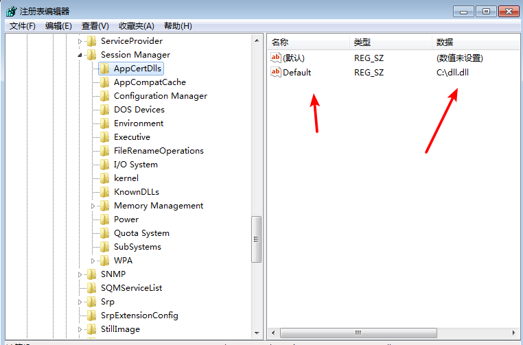 Win7版本下没有“AppCertDlls”项,需自己创建。