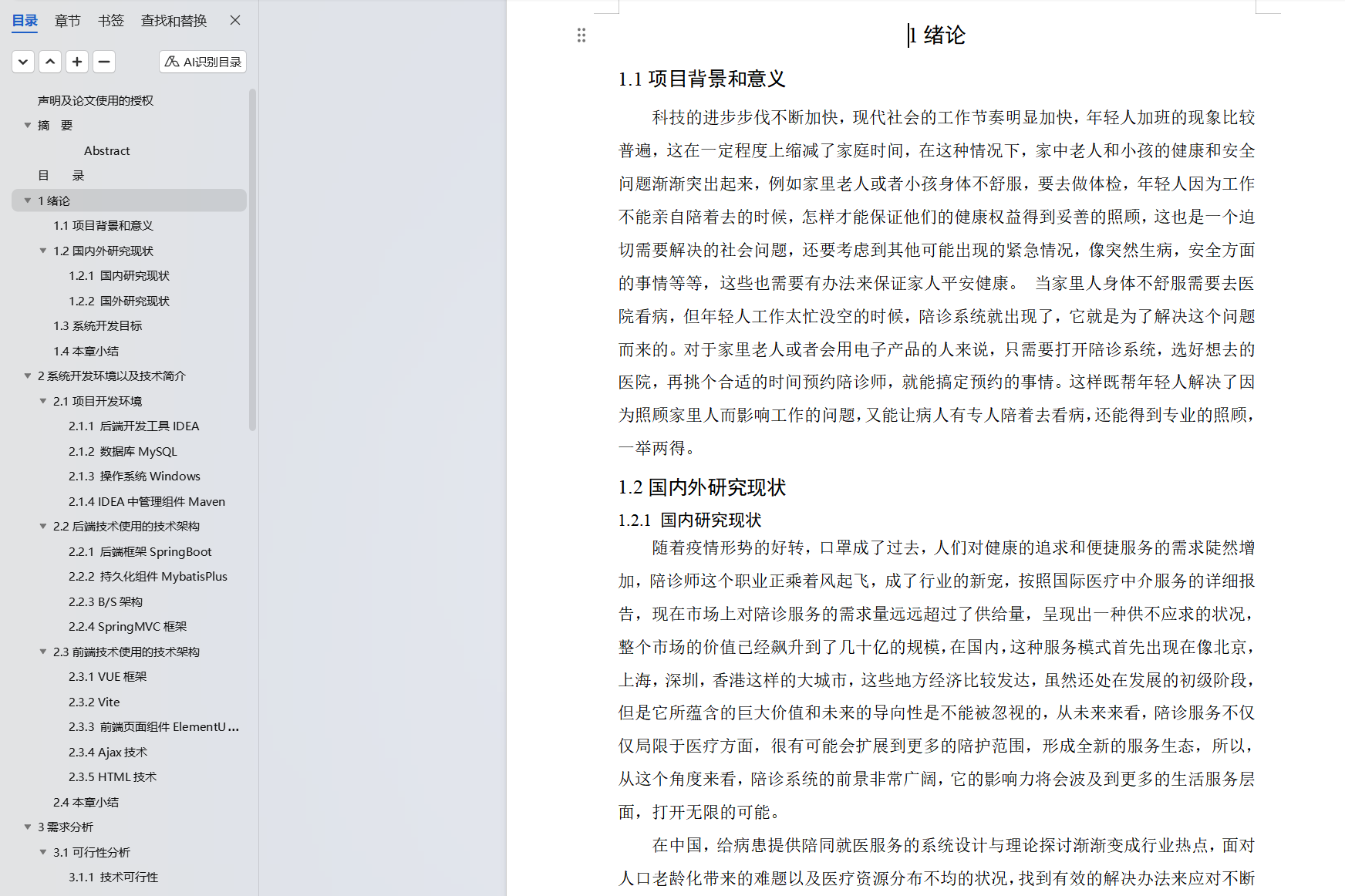 病人在就医过程里缺少陪伴时会碰到麻烦,陪诊系统被引入以解决这一问题,让患者能得到合适的陪伴和支持,平台可让用户预定陪诊员,在就诊时给陪诊员赋予陪伴,语言翻译,医嘱记录等支持性服务,该系统采用前后端分离架构,后端用SpringBoot,前端用VUE,二者均在Vscode环境里部署,前端页面通过MySQL数据库和MyBatisPlus工具,达成用户注册,登录,预约陪诊师服务,支付相关费用,查询预约历史记录等主要功能。