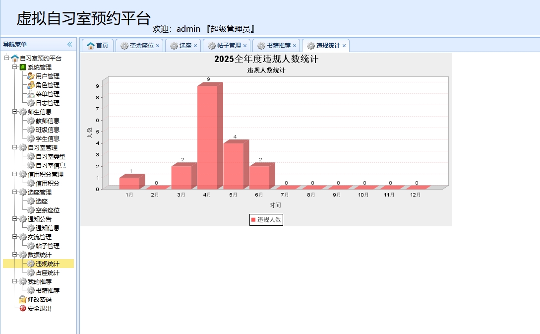 随着互联网技术的发展和人们对自主学习环境需求的增加,虚拟自习室作为一种新型学习空间应运而生。本文旨在设计并实现一个基于 SSM(Spring + SpringMVC + MyBatis)框架的虚拟自习室预约管理系统。通过eclipse作为开发工具,语言采用当前最流行的Java语言,后台框架采用SSM框架,Mysql作为数据库,tomcat为本地服务器,设计和编写自习室预约管理系统。利用最新的HTML5和CSS3技术编写网页使界面易于接受的自习室预约管理系统,从而缓解自习室占座问题。