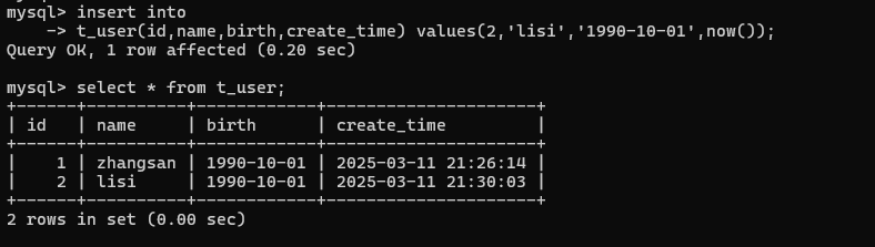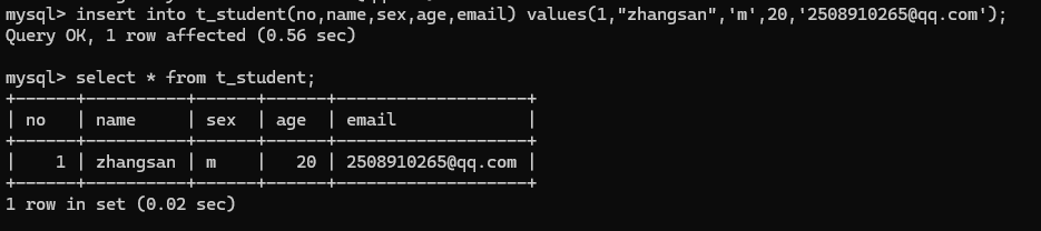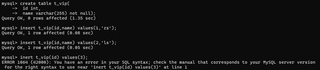 注意:字段名和值要一一对应。也就是数量要对应,数据类型要对应。