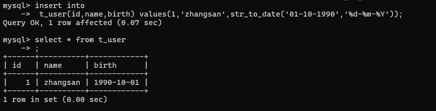 str_to_date函数可以将字符串转换为date类型数据,通常使用在insert中,因为插入的时候需要一个日期类型的数据,需要通过该函数将字符串转为date,但是你提供的字符串是‘年-月-日’这种格式就不需要进行转换,mysql会自动转换,不用显示调用。