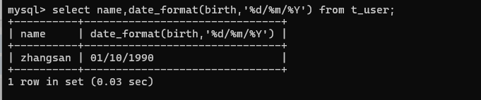 date_format:将date类型转换为具有一定格式得varchar字符串类型