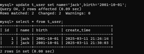 update 表名 set 字段名1=值1,字段名2=值2,字段名3=值3... where 条件;
