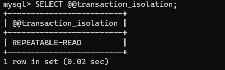 SELECT @@transaction_isolation;![]()