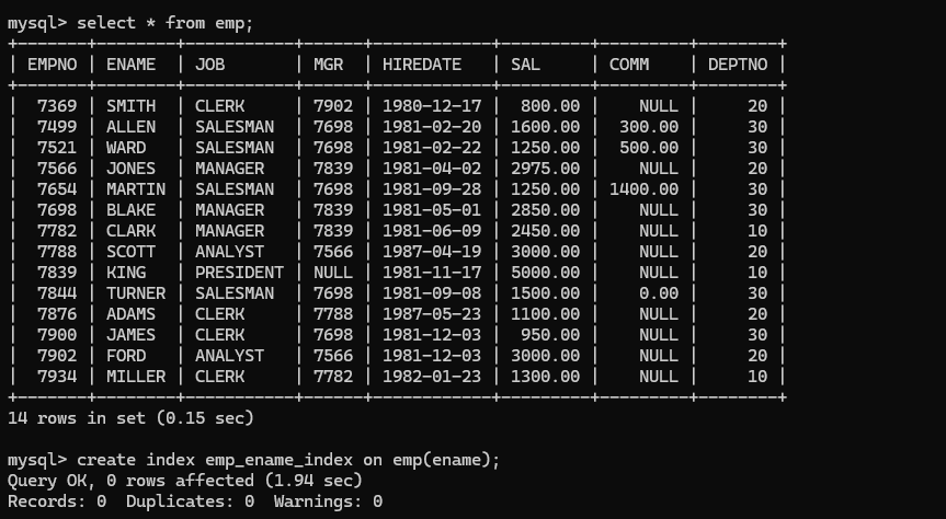 给emp表的enamel字段添加索引,起名 emp_ename_index