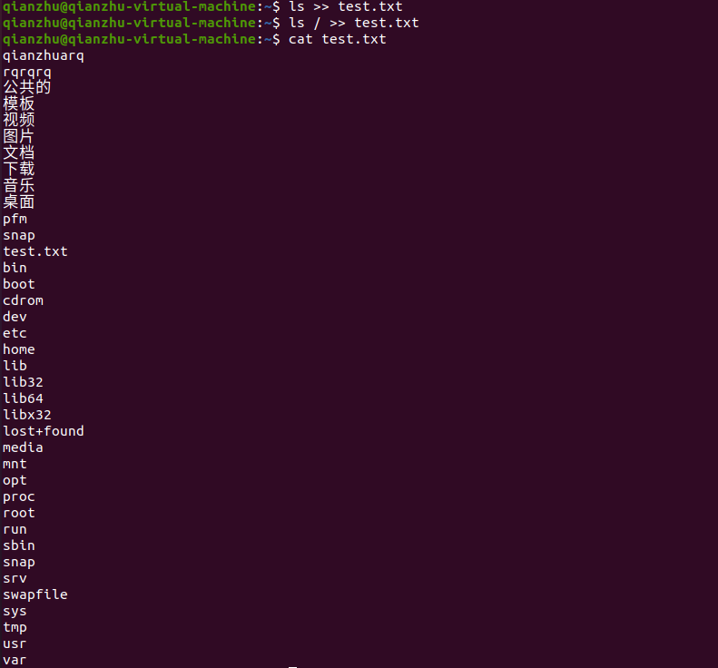 - >> , 将左侧命令的结果,追加写入到符号右侧的指定文件中