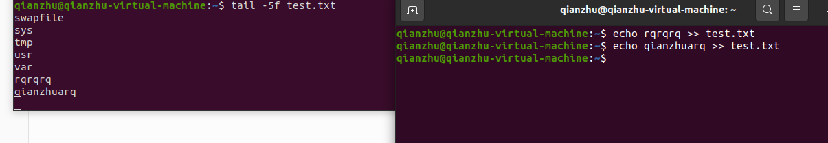 使用-f 持续跟踪是一直更新的意思,展示下面变化过程: