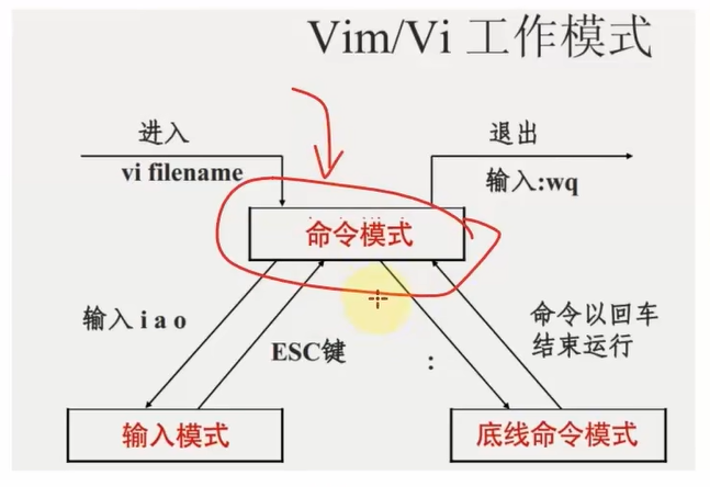 命令模式下,所敲的按键编辑器都理解为命令,以命令驱动不同的功能。