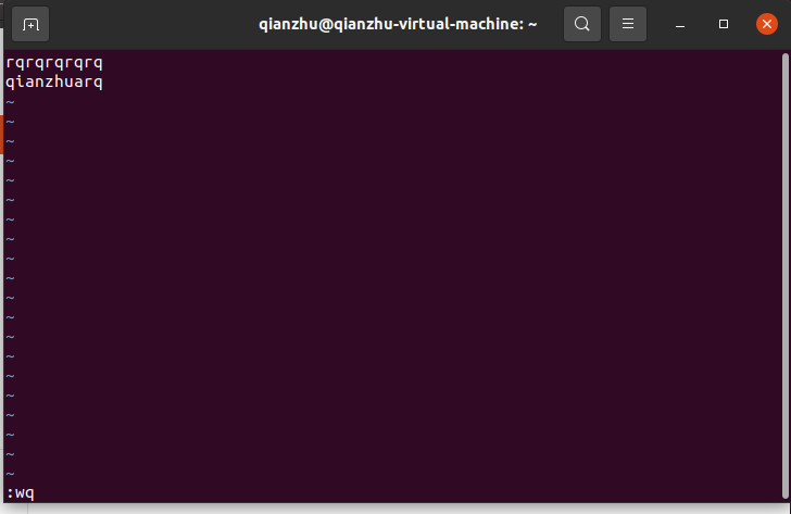 在冒号后面输入wq,w表示保存的意思,q表示退出的意思,输入之后回车就可以进行保存退出