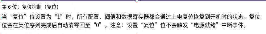从官方文档中可以看见,第6为为复位位置,写入1即可,所以要复位要传入的数据是0x40,复位的定义翻译在下方