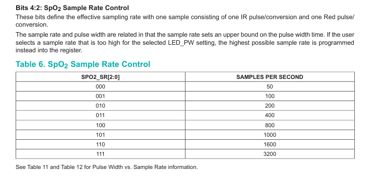 根据官方文档,0x0A为寄存器地址设置采样率和脉宽,可以看见第6-5位是设置ADC的,第4-2位是设置采样率的,第1-0是设置,再根据表格进行选择配置。