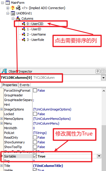 - 编写 UniDBGrid 的 onColumnSort 事件