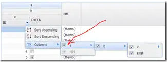 多栏显示表头,如GroupHeader = a;b;c 时的样式见下图: