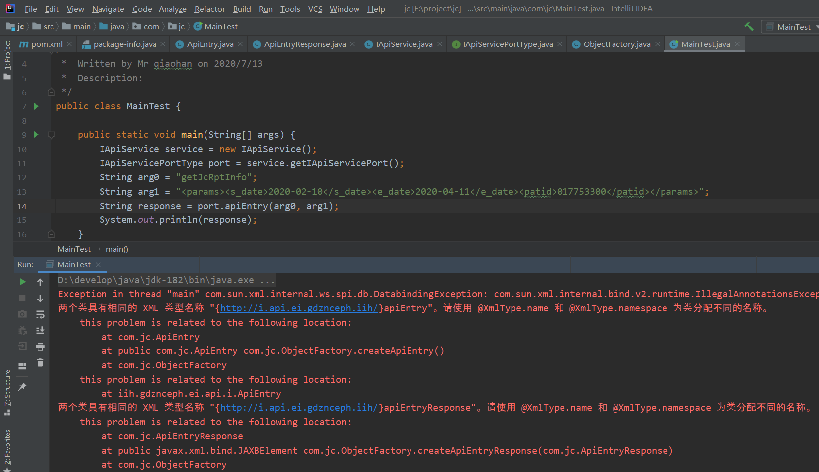 apiEntry加上response之后就与另一个类的 @XmlType.name重复了,修改@XmlType.name为不同的名称