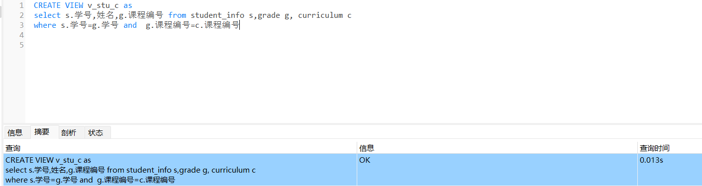 CREATE view v_stu_g AS SELECT s.学号,姓名,课程名称,分数