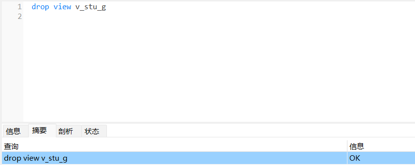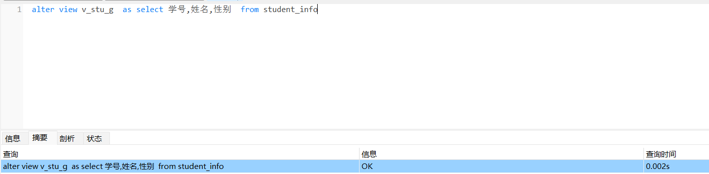 alter view v_stu_g as select 学号,姓名,性别 from student_info