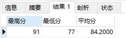 select MAX(分数) as 最高分,MIN(分数) as 最低分,AVG(分数) as 平均分