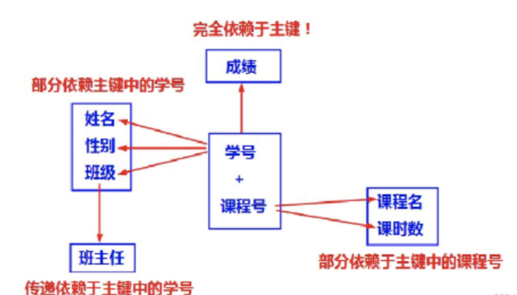 因此,(学号,课程号)----->班主任是“传递函数依赖”