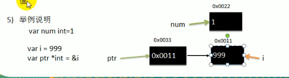 // 指针类型,变量存的是一个地址,这个地址指向的空间存的才是值,比如var ptr *int=&num