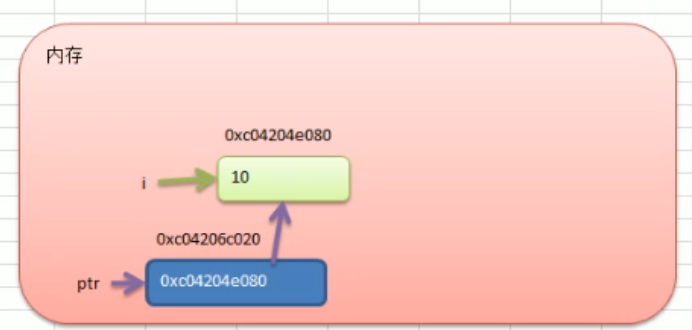 // xx是一个指针变量,类型是*int,并且指向i的内存地址,内存地址指向的才是值