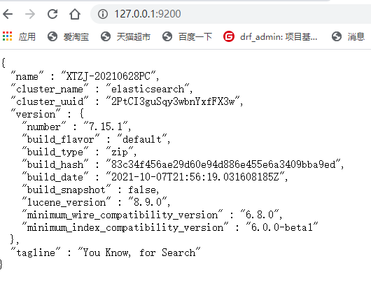 注意: 9300端口为ES 集群间组件的通信端口,9200端口为浏览器访问的http协议Restful端口