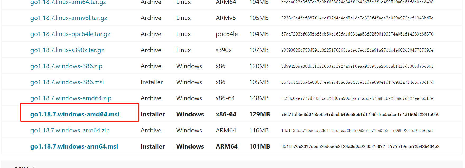 **注意:下载 Windows 版本的Go语言开发包时尽量选择 MSI 格式,因为它可以直接安装到系统,不需要额外的操作。 **