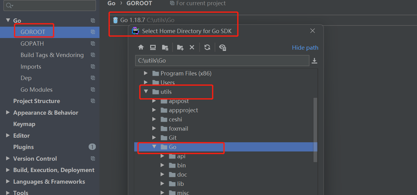 然后重启goland 这样再配置goroot的时候就会自动识别到GO语言SDK版本了