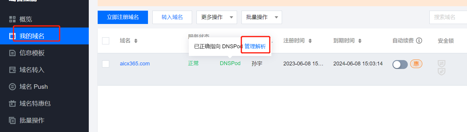 域名控制台地址 https://console.cloud.tencent.com/domain/all-domain