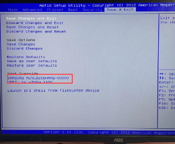 - 重启界面按esc进入bsio切换启动项