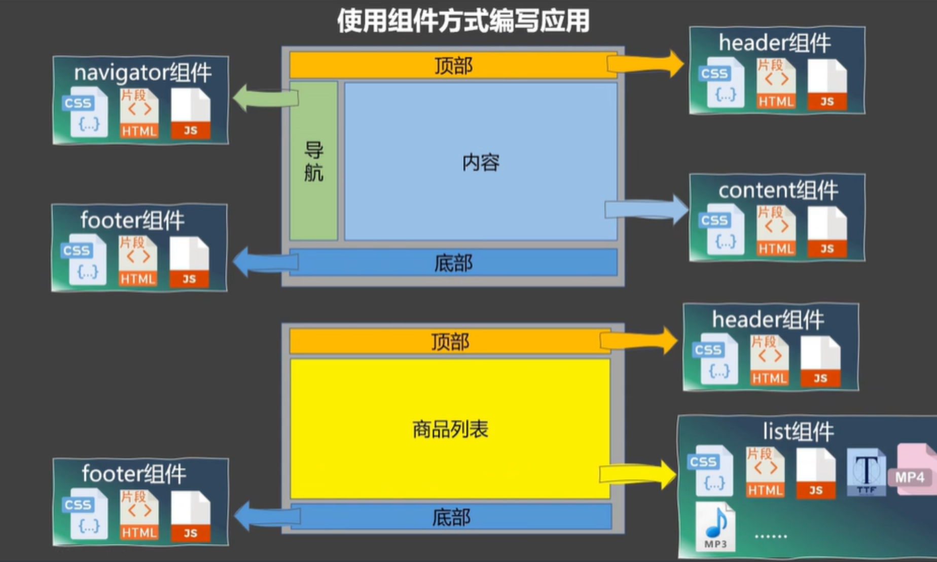 以后标准化开发过程中,会由 vm 只管理 一个 app 这个顶层组件, app中再管理着多个子组件和子嵌套组件