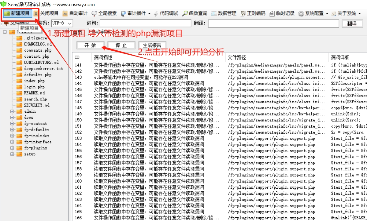 分析工具:seay源代码审计系统 下载地址:https://github.com/f1tz/cnseay.git