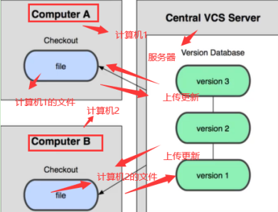 SVN是集中式版本控制系统,版本库是集中放在中央服务器的,而工作的时候,用的都是自己的电脑,所以首先要从中央服务器得到最新版本,然后去工作,完成工作后需要把自己做完的推送到中央服务器。