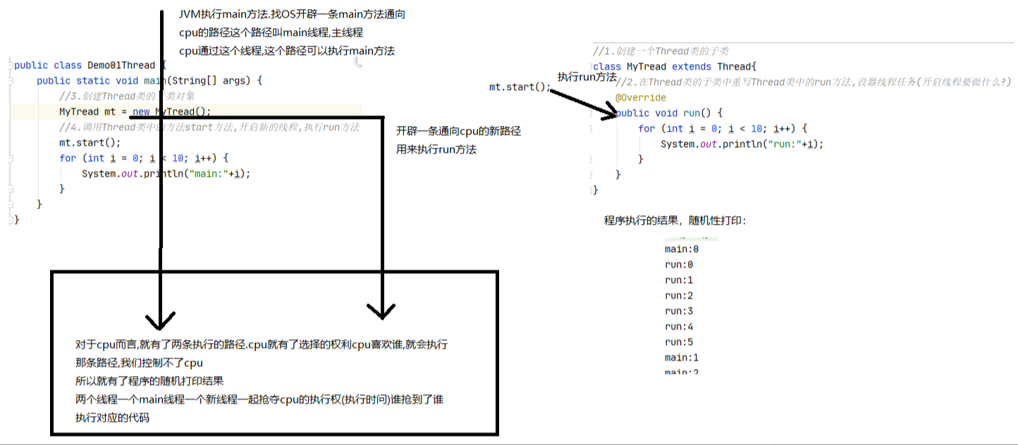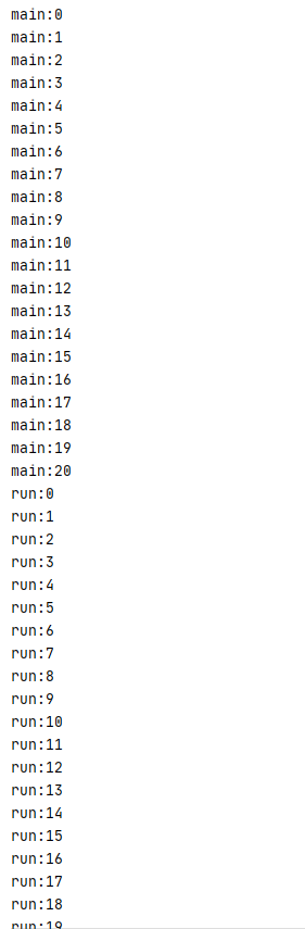 结果是两个线程并发地运行;当前线程(main线程)和另一个线程(创建的新线程,执行其run方法)。