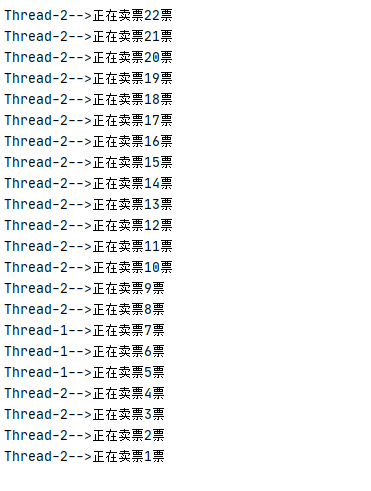 public class demg_07 implements Runnable{ //定义一个多线程共享的票源 private int ticket = 100; //设置线程任务:卖票 @Override public void run() { //使用死循环让卖票操作重复执行 while (true){ pay(); } } //定义一个同步方法 public synchronized void pay(){ //判断票是否存在 if (ticket > 0){ //提高安全问题出现的概率,让程序休眠 try { Thread.sleep(10); } catch (InterruptedException e) { e.printStackTrace(); } //票存在,卖票, ticket-- System.out.println(Thread.currentThread().getName()+"-->正在卖票"+ticket+"票"); ticket--; } } }