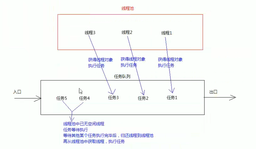 线程池:其实就是一个容纳多个线程的容器,其中的线程可以反复使用,省去了频繁创建线程对象的操作,无需反复创建线程而消耗过多资源