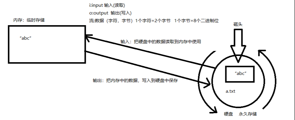 我们把这种数据的传输,可以看做是一种数据的流动,按照流动的方向,以内存为基准,分为输入input和输出output,即流向内存是输入流,流出内存的输出流。