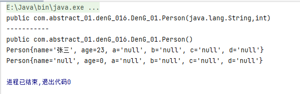 public class demo03 { public static void main(String[] args) throws Exception { /* Class对象功能-获取Constructor Constructor<?>[] getConstructors() Constructor<T> getConstructor(Class<?>... parameterTypes) Constructor<?>[] getDeclaredConstructors() Constructor<T> getDeclaredConstructor(Class<?>... parameterTypes) Constructor构造方法 创建对象: T newInstance(Object... initargs) 如果使用空参数构造方法创建对象,操作可以简化:Class对象的newInstance方法 忽略访问权限修饰符的安全检查 setAccessible(true):暴力反射 */ //0.获取Person的Class对象 Class<Person> personClass = Person.class; //1.Constructor<T> getConstructor(Class<?>... parameterTypes) Constructor<Person> constructor = personClass.getConstructor(String.class, int.class);//获取构造器 System.out.println(constructor); System.out.println("-----------"); Constructor<Person> constructor1 = personClass.getConstructor(); System.out.println(constructor1); //创建有参构造对象 Person person = constructor.newInstance("张三", 23); System.out.println(person); //创建空构造对象 Person person2 = personClass.newInstance(); System.out.println(person2); } }