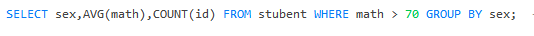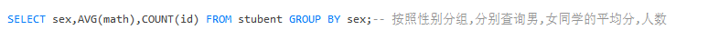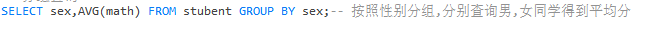 语法:select 列名(性别),计算平均分(数学成绩) from 表名 group by 列名(性别);